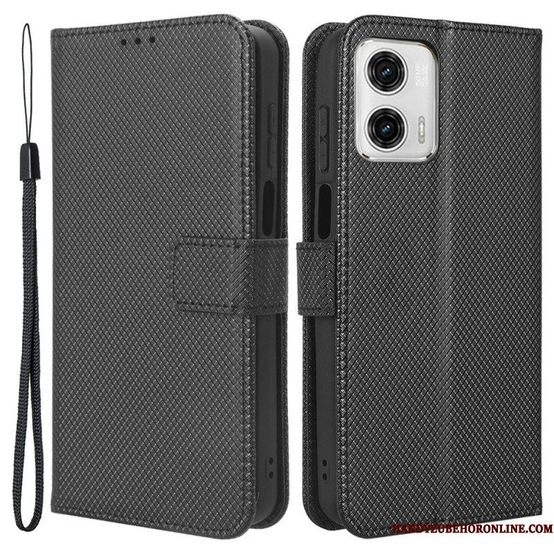 Leren Hoesje voor Moto G73 5G Met Ketting Patroon Met Bandjes
